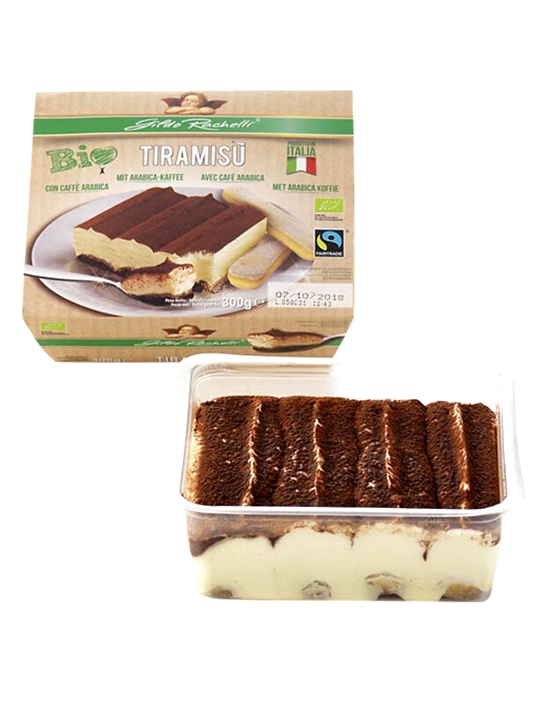Jemný dezert Tiramisu od italské značky Rachelli je poctivou reinterpretací klasického receptu – tentokrát v bio kvalitě. Krém z mascarpone, smetany a mléka je lehce oslazen třtinovým cukrem a doplněn kávovou omáčkou, která dodává dezertu hloubku a charakter. V receptu se objevuje i nepatrné množství alkoholu, které nenarušuje jemnost dezertu, ale podtrhuje jeho autentickou chuťovou linku. Všechny složky pocházejí z ekologického zemědělství. Výsledkem je dezert, který působí jako domácí, ale s precizností italského cukráře. Uchovávejte v chladu při +4 až +6 °C. Trvanlivost je přibližně 4 týdny. Toto je 300g rodinné balení, abyste ušetřili obaly, když chcete potěšit každého v rodině nebo partě.