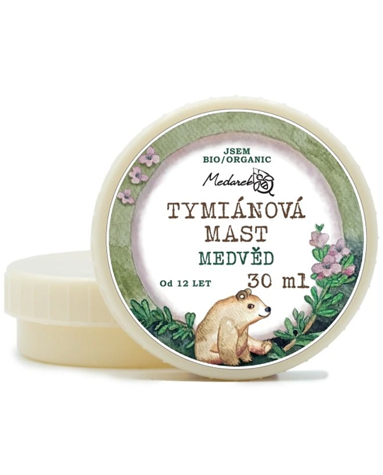 Medarek je česká značka, která se zaměřuje na výrobu přírodních mastí a balzámů s využitím bio surovin, bez vody, parabenů, umělých aromat či konzervantů. Receptury vznikají ve spolupráci s odborníky na aromaterapii a farmaceutickou praxi, což zajišťuje vysokou kvalitu i bezpečnost. Tymiánová mast Medvěd je součástí řady produktů určených pro různé věkové skupiny – vedle varianty Medvěd pro dospělé a děti od 12 let existují i jemnější verze Zajíček a Kuřátko pro menší děti.